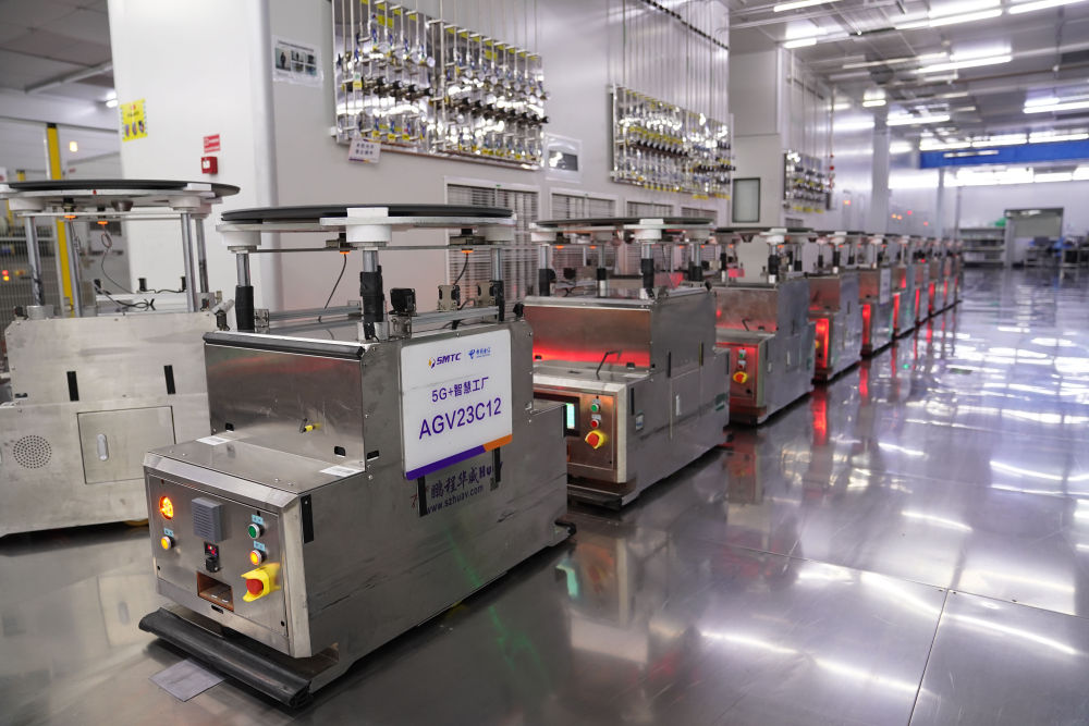 2024年6月4日,在位于江西省南昌市高新區(qū)的江西兆馳半導體有限公司外延車間,AGV自動轉(zhuǎn)運小車在5G技術支持下進行自動搬運。 新華社記者 周密 攝