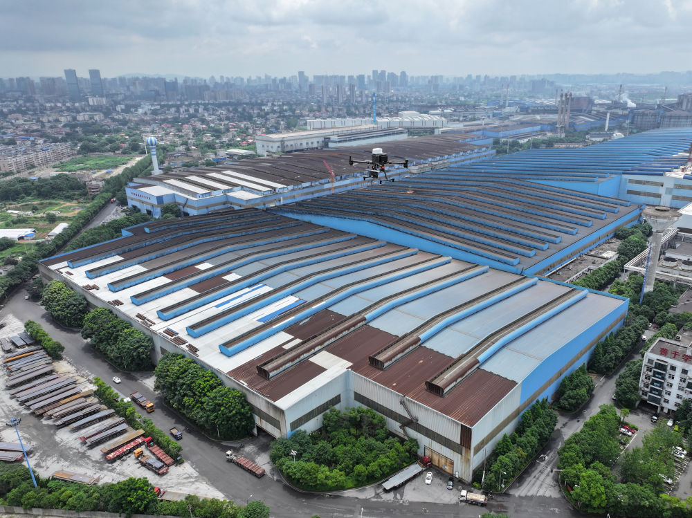 2024年6月13日,在湖南省湘潭市,無人機在湘潭鋼鐵集團有限公司進行智能巡檢(無人機照片)。無人機智能巡檢系統(tǒng)利用5G通信、北斗定位技術和“AI+機器視覺”等技術,針對人員點檢不便的問題,對廠內(nèi)多場景進行無人機定期智能巡檢,實現(xiàn)高爐測溫、電力絕緣端子巡檢等工作。 新華社記者 陳澤國 攝