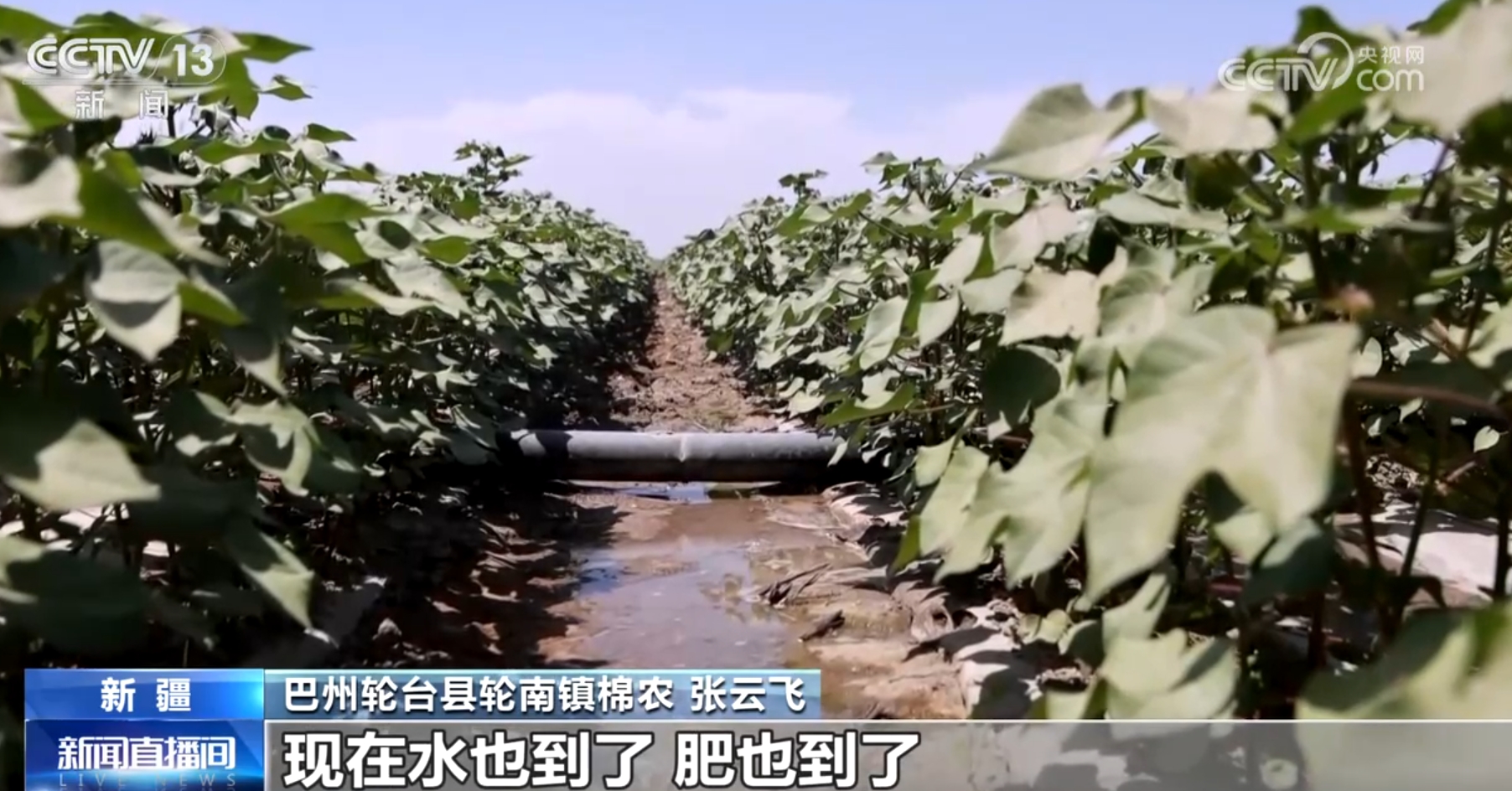 巴州輪臺(tái)縣輪南鎮(zhèn)棉農(nóng)張?jiān)骑w稱(chēng):“現(xiàn)在正是對(duì)水肥需求的高峰期,正好塔里木河的水來(lái)得非常及時(shí),現(xiàn)在水也到了,肥也到了,棉花長(zhǎng)勢(shì)非常好?!?/p>