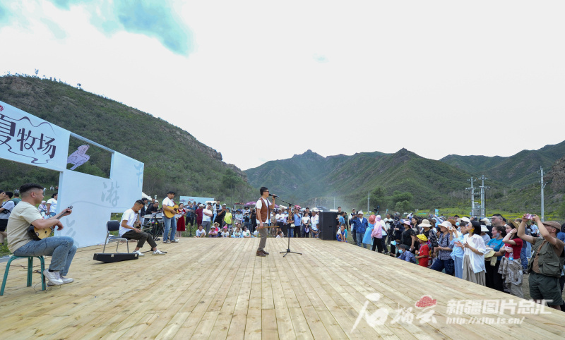 △6月15日,歌手為游客演唱歌曲。由烏魯木齊市水磨溝區(qū)主辦的夏牧場(chǎng)·游牧文化旅游節(jié)在石人溝蝴蝶谷景區(qū)啟動(dòng)?;?dòng)體驗(yàn)、游牧文化展演、刁羊等,讓游客沉浸式體驗(yàn)游牧文化,感受大美風(fēng)光。石榴云/新疆日?qǐng)?bào)記者 王禹攝