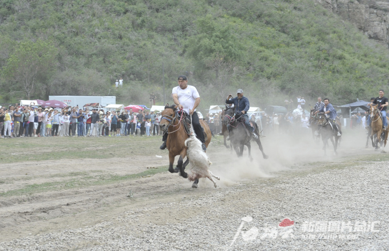△6月15日,牧民正在表演精彩的刁羊。石榴云/新疆日?qǐng)?bào)記者 王禹攝