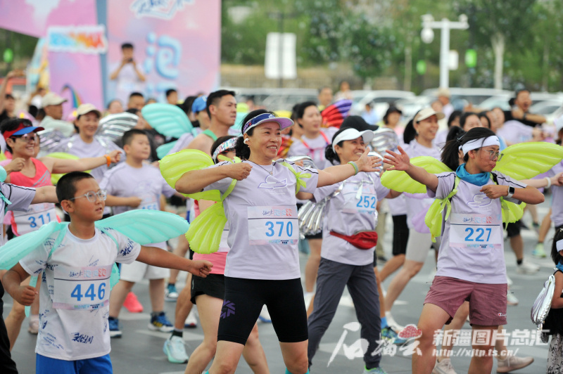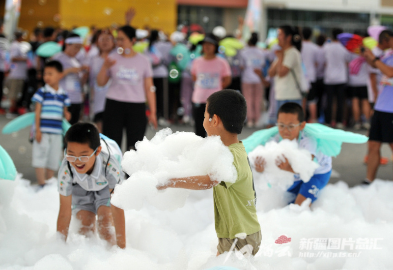 △6月14日,一場(chǎng)趣味“泡泡跑”活動(dòng)在烏魯木齊杉杉奧特萊斯廣場(chǎng)舉辦,600多名市民參加了這場(chǎng)別開生面的5公里“泡泡跑”。與傳統(tǒng)的跑步比賽不同,“泡泡跑”更具趣味性,參與者可以邊跑邊玩,盡情享受一場(chǎng)清涼的泡泡盛宴。石榴云/新疆日?qǐng)?bào)記者 秦梅花攝
