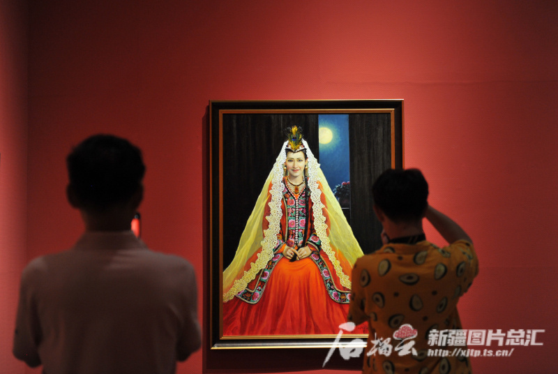 △6月15日,烏魯木齊市民在新疆美術(shù)館參觀畫展。石榴云/新疆日?qǐng)?bào)記者 秦梅花攝