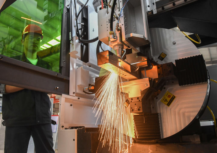 在位于湖北武漢“中國光谷”的華工科技產(chǎn)業(yè)股份有限公司連續(xù)取得關鍵核心技術(shù)突破,實現(xiàn)高性能三維五軸激光切割機完全國產(chǎn)化。(視頻截圖)
