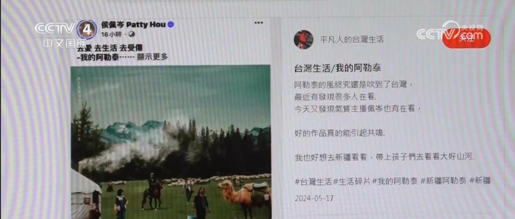 從廣袤無垠的戈壁沙漠到壯麗的天山山脈,再到碧綠的喀納斯湖,新疆的雄偉壯觀的自然美景和豐富多樣的人文風(fēng)情在臺(tái)灣經(jīng)常通過各類旅游論壇、網(wǎng)紅游記的分享廣為傳播。而這段時(shí)間新疆旅游之所以在臺(tái)灣更加火爆,不得不提的就是這部在臺(tái)灣也引發(fā)很多關(guān)注的電視劇《我的阿勒泰》。在社交媒體上有臺(tái)灣劇迷分享追劇感想,也引來大陸網(wǎng)友熱情分享新疆的美景美食。