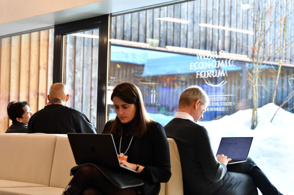 ↑在瑞士達(dá)沃斯舉行的世界經(jīng)濟(jì)論壇2024年年會現(xiàn)場。