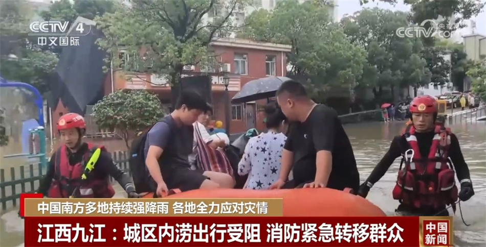 23日,江西九江遭遇強降雨,城區(qū)出現積水內澇,部分路段積水深超一米,居民出行受到影響。當地消防救援人員利用橡皮艇幫助群眾轉移,同時,消防救援人員使用浮艇泵,連接水帶,開展排水作業(yè)。