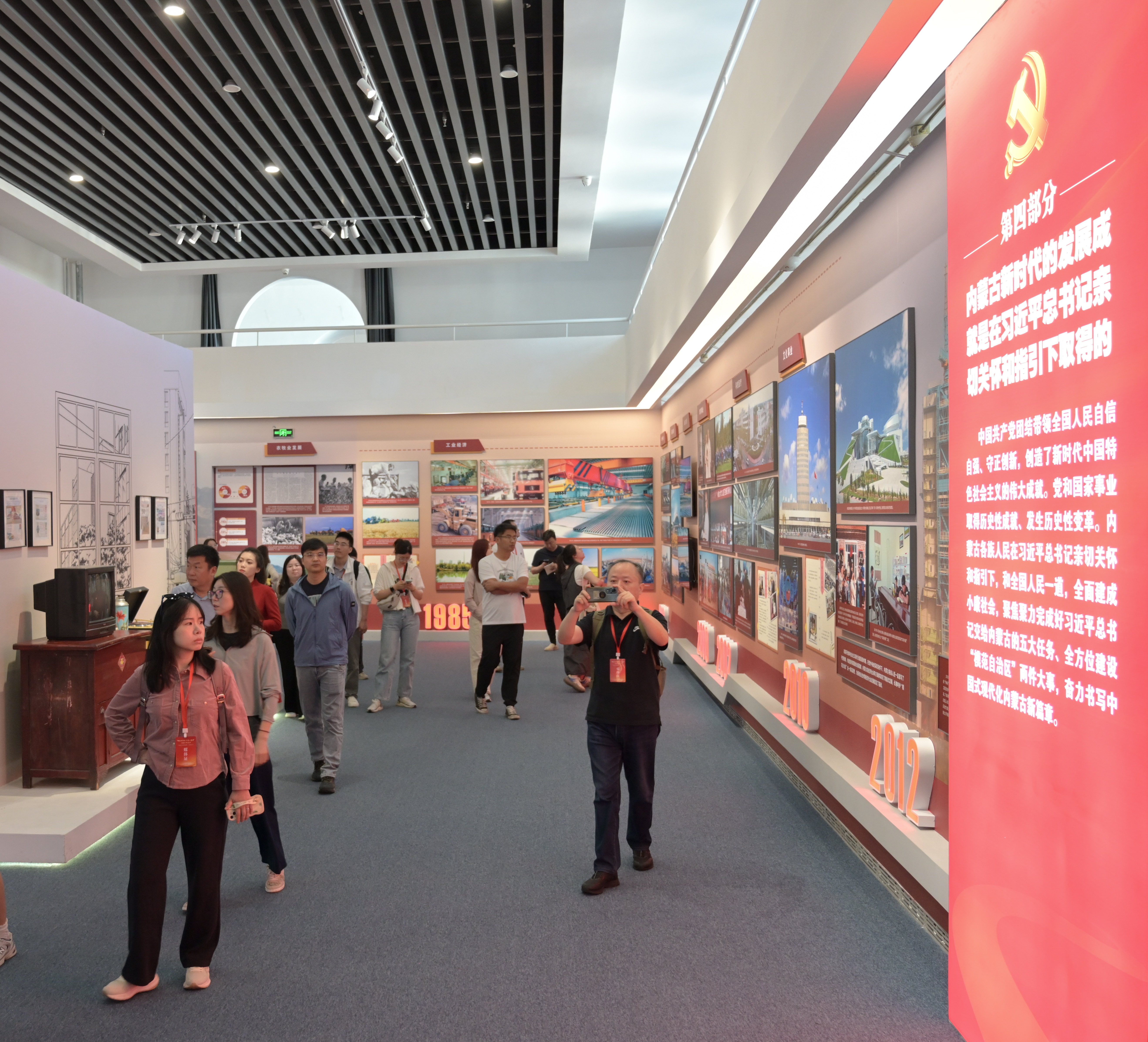 “牢記囑托 感恩奮進(jìn)”主題展以鑄牢中華民族共同體意識(shí)為主線,分為“人民領(lǐng)袖 情系北疆”“高瞻遠(yuǎn)矚 把舵領(lǐng)航”“五大任務(wù) 擔(dān)當(dāng)奮進(jìn)”“聚焦主線 模范前行”“人民至上 初心如磐”“勇闖新路 挺進(jìn)中游”六大篇章,全面回顧了習(xí)近平總書(shū)記對(duì)內(nèi)蒙古的深情關(guān)懷和厚愛(ài)期許,生動(dòng)展現(xiàn)了各族干部群眾緊跟總書(shū)記奮進(jìn)新征程、建功新時(shí)代的生動(dòng)實(shí)踐。