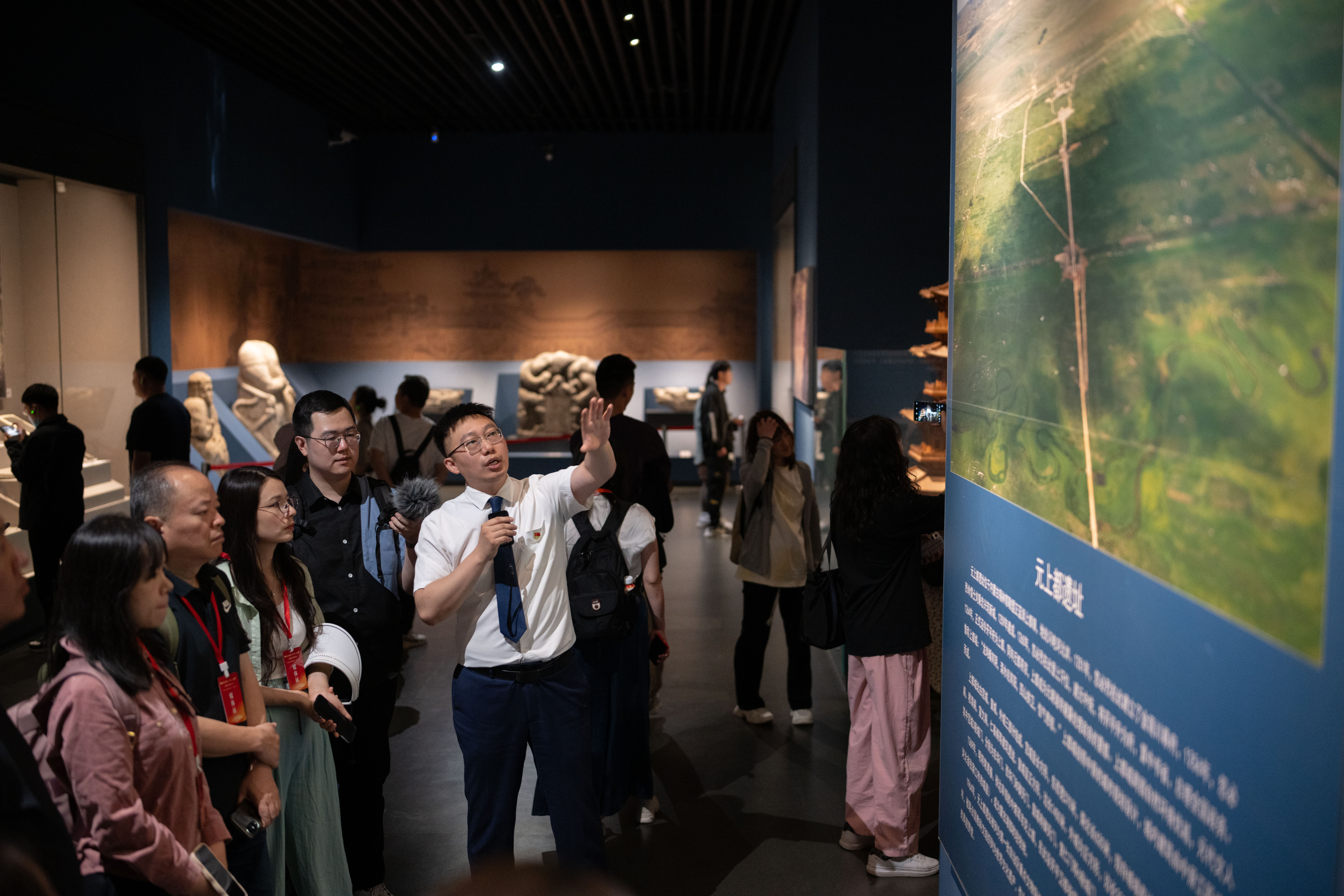 在內(nèi)蒙古博物院,采訪團(tuán)成員聽(tīng)講解。