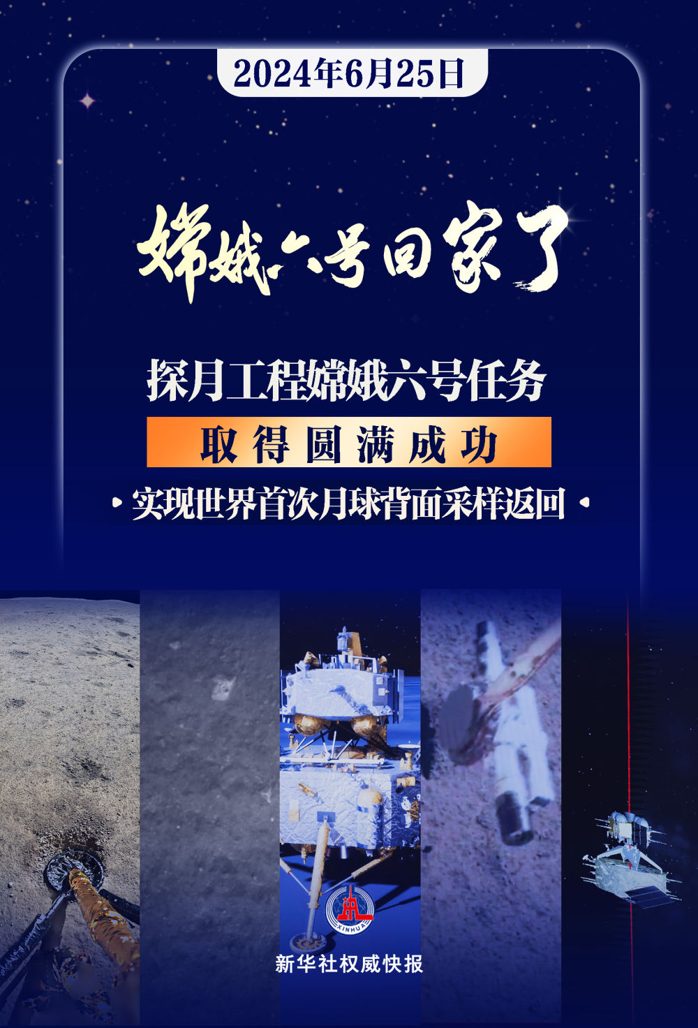 從5月3日成功發(fā)射到6月2日精準(zhǔn)著陸在月球背面“挖寶”,再到6月25日順利著陸“回家”,嫦娥六號每一個“動作”環(huán)環(huán)相扣、順利進(jìn)行,這場長達(dá)53天的太空探索終獲成功!