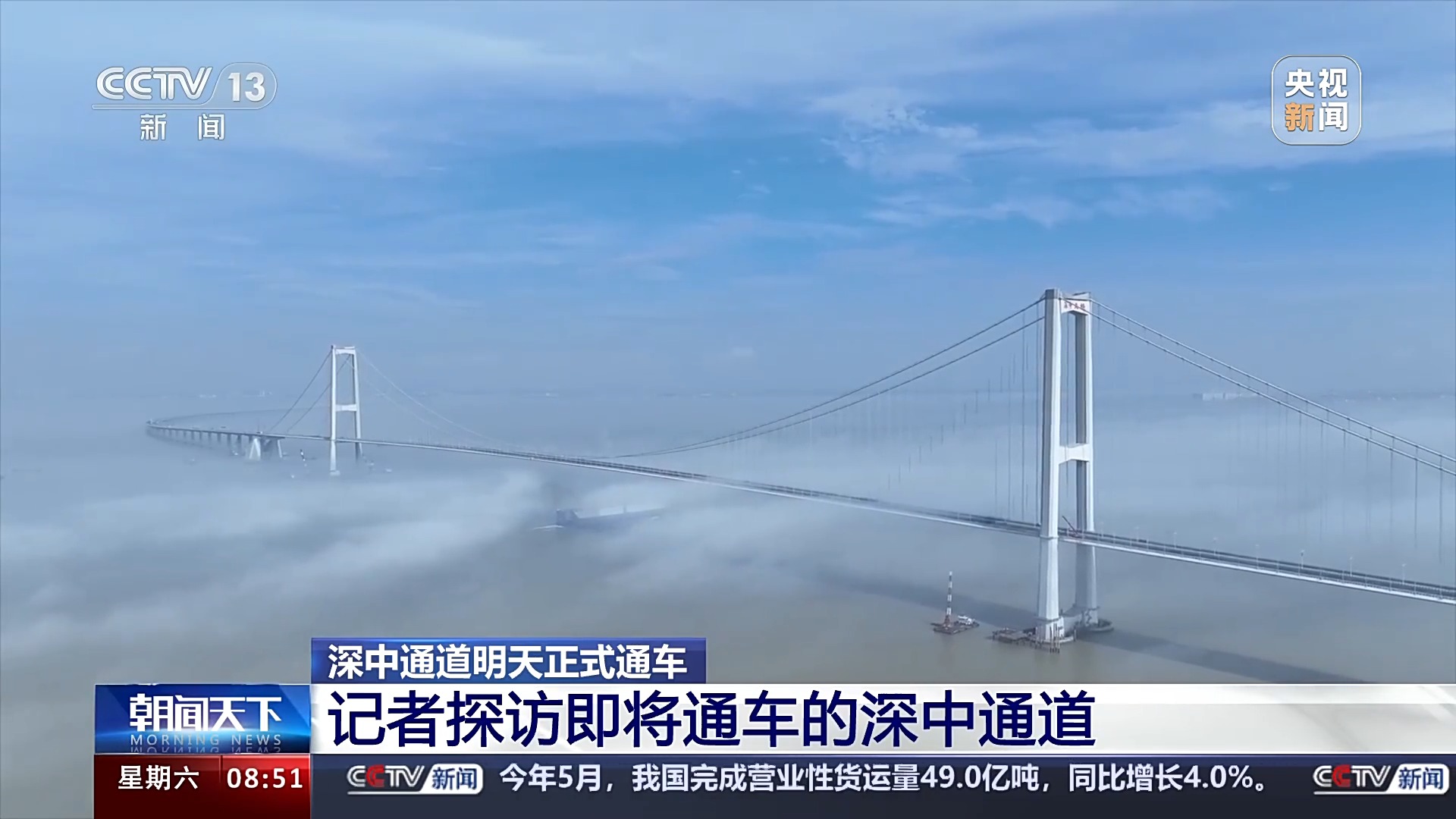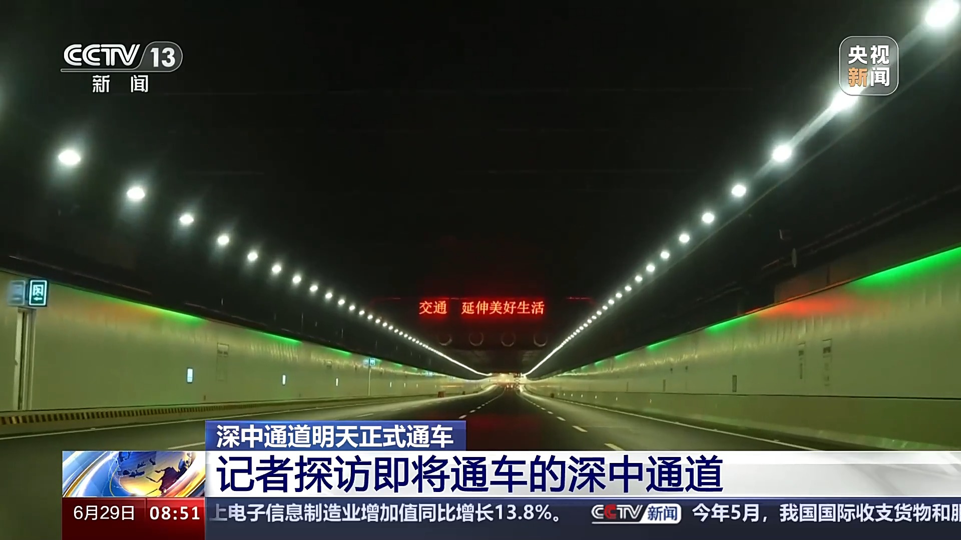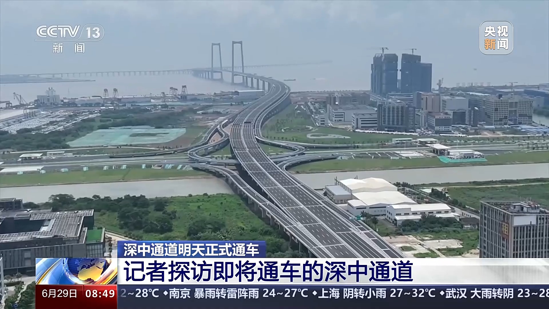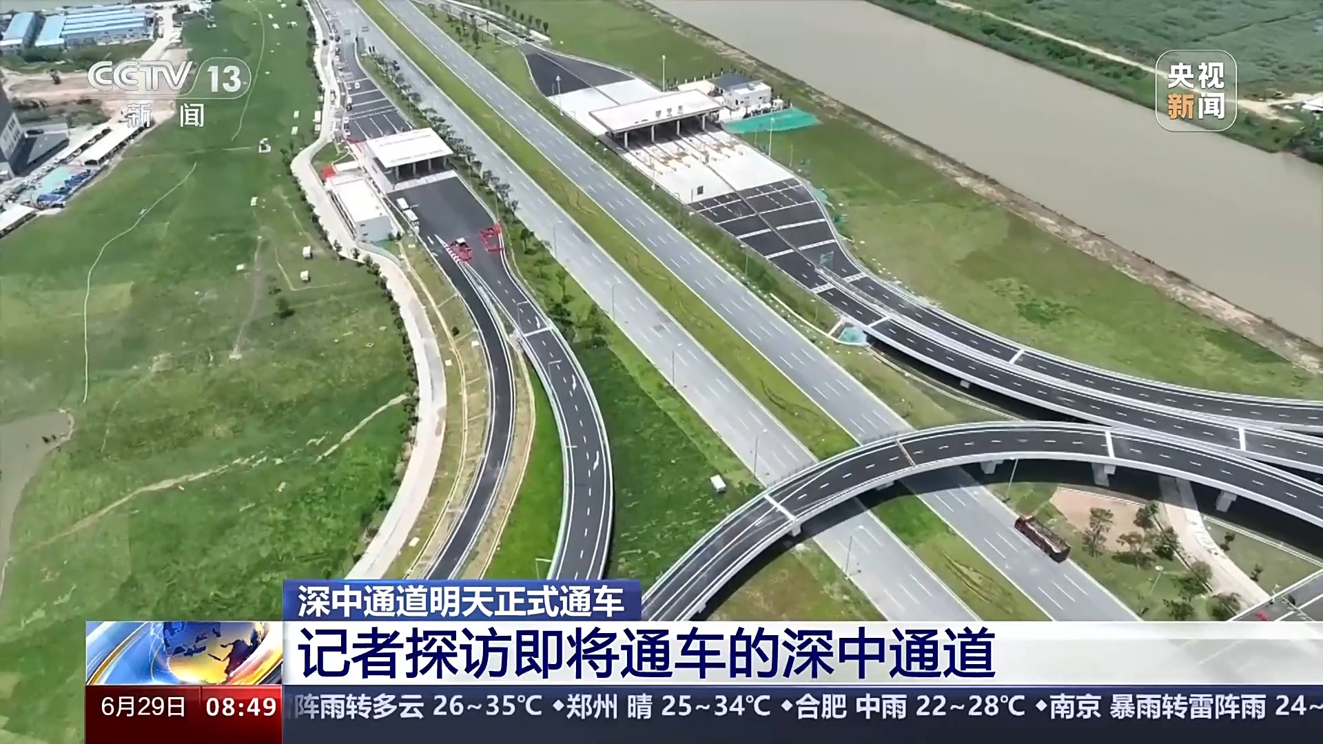 總臺(tái)記者 王思元:深中通道全長(zhǎng)24公里,我們行駛了大概18分鐘,就已經(jīng)通過海底隧道進(jìn)入了深圳。這里是重要的互聯(lián)互通的交通樞紐,我身后就是廣深沿江高速,通過我的另一側(cè),大家可以看到,從這里行駛5公里左右,就可以到達(dá)機(jī)荷高速和廣深高速了,從這個(gè)位置到達(dá)深圳寶安國(guó)際機(jī)場(chǎng)有2公里的距離。