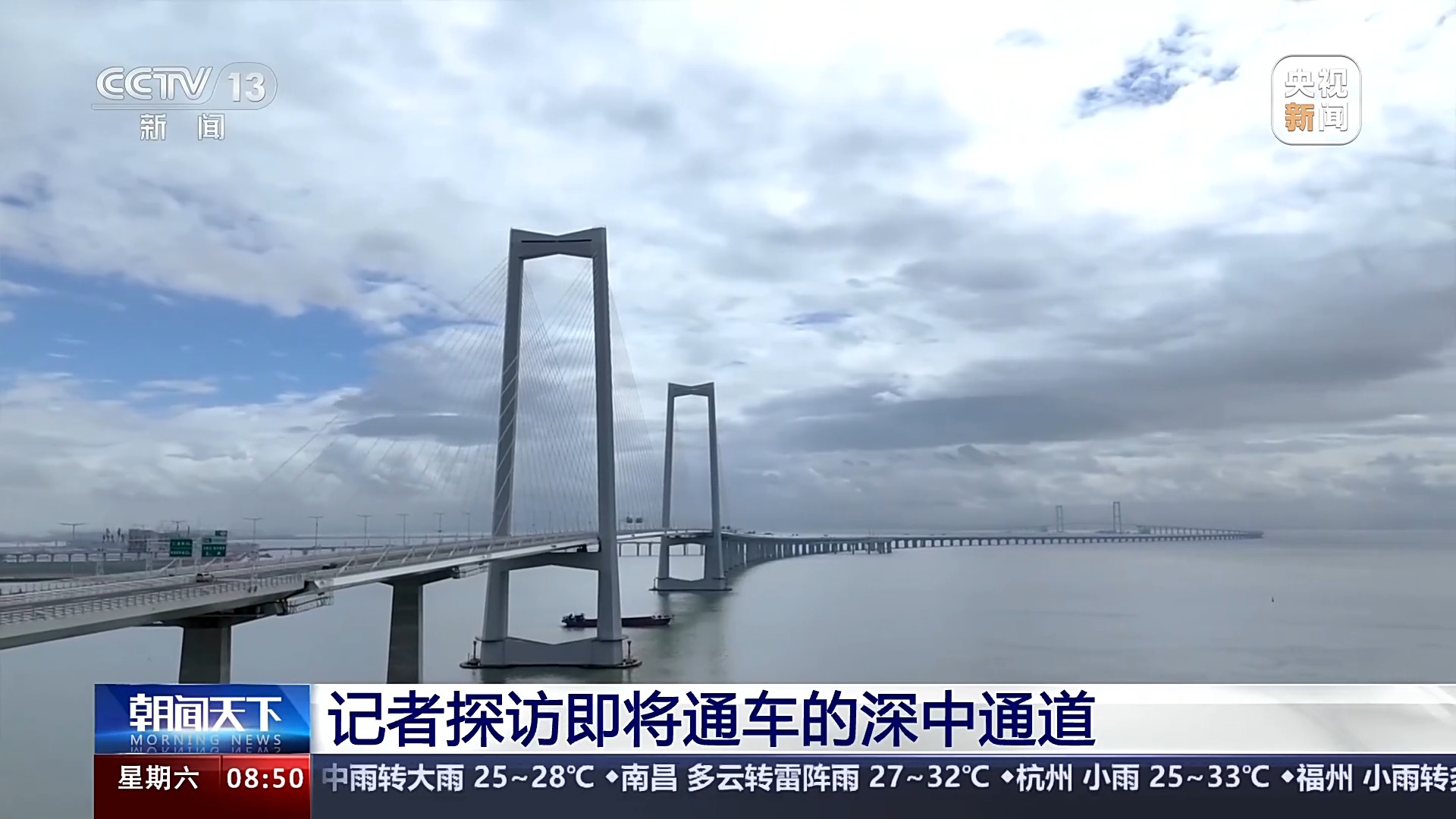 總臺(tái)記者 王思元:現(xiàn)在我們就已經(jīng)行駛到了深中通道的一個(gè)制高點(diǎn)的位置,這個(gè)位置離伶仃洋的海面有91米高。也就是相當(dāng)于30層樓的這個(gè)高度,大家可以看一下海面。