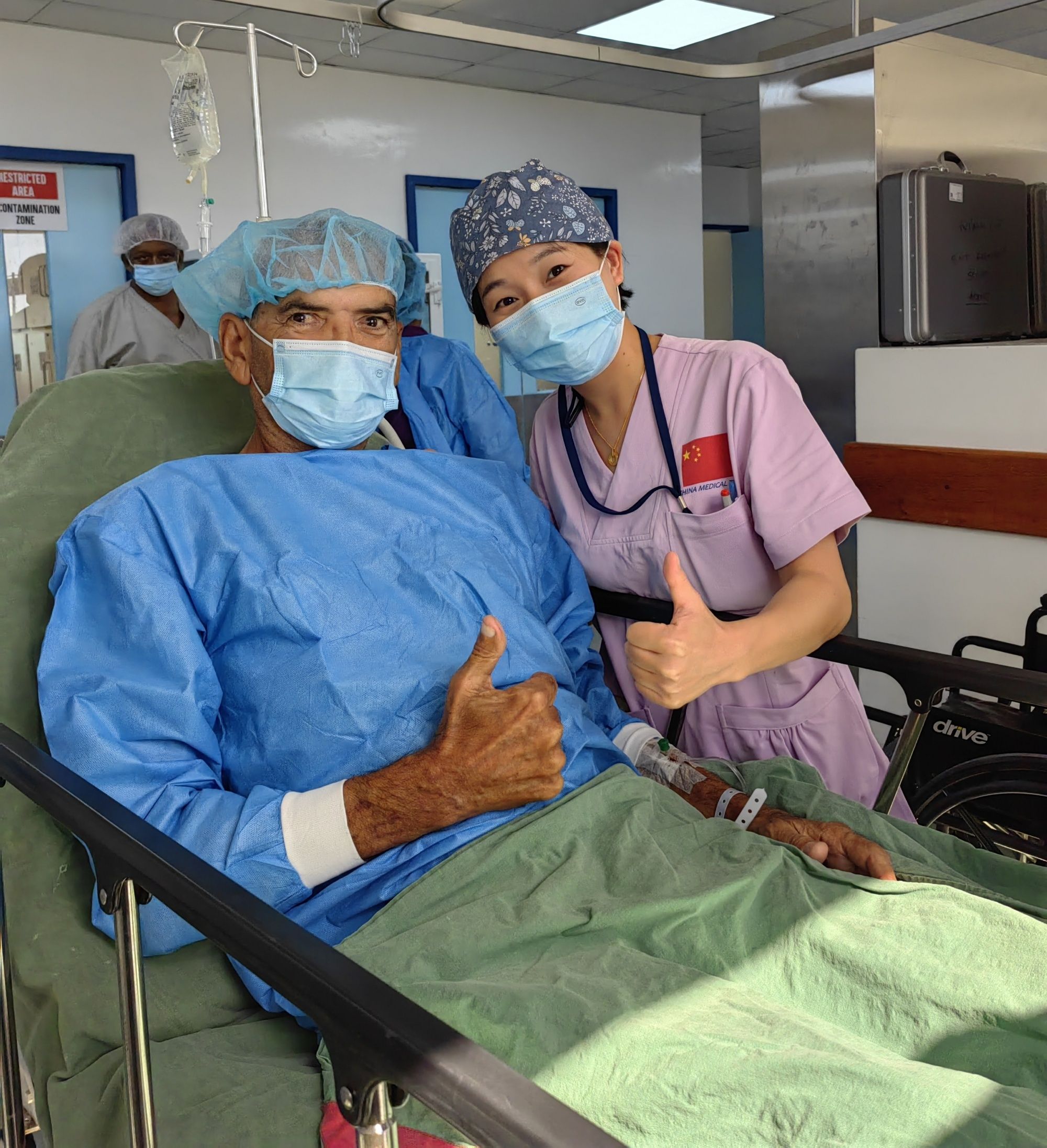 袁小舒:當?shù)蒯t(yī)院由于資源有限,所以在腔鏡器械的組裝和手術配合上,當?shù)刈o士不是特別熟悉。護士長聽說我有這方面經(jīng)驗,希望我能給他們提供幫助。憑借在國內(nèi)的扎實基礎,我很快地熟悉了手術器械,重新組裝后順利使用。臺上的手術醫(yī)生在術后特別找到我表示感謝,說他們一定會記住這名中國護士,希望以后的手術我都能在。