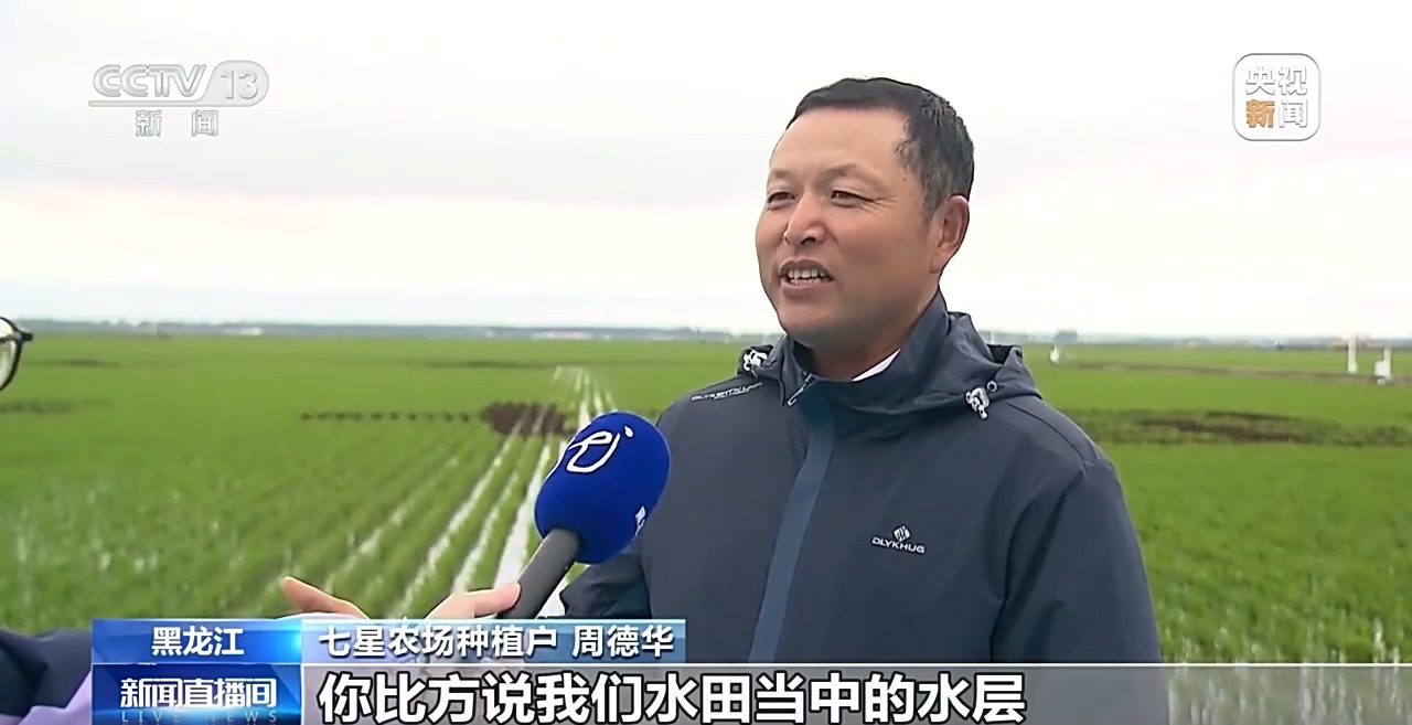 七星農(nóng)場(chǎng)種植戶(hù) 周德華:比方說(shuō)我們水田當(dāng)中的水層、病蟲(chóng)草害的監(jiān)管,可以通過(guò)巡田機(jī)在田里進(jìn)行巡視,這樣我們能夠很快、很直接地了解田里的情況,進(jìn)行及時(shí)科學(xué)的防控。