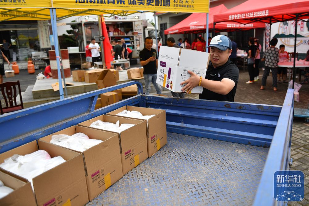 7月10日,在良心堡鎮(zhèn)望君洲村,志愿者在打包盒飯。 新華社記者 陳振海 攝