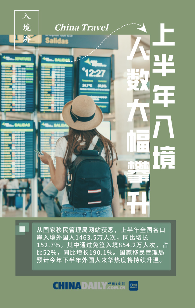 編者按:隨著免簽“朋友圈”不斷擴(kuò)容,以及144小時(shí)過(guò)境免簽政策的“加持”,我國(guó)入境游正逐漸升溫。國(guó)家移民管理局?jǐn)?shù)據(jù)顯示,今年上半年,全國(guó)各口岸入境外國(guó)人1463.5萬(wàn)人次,同比增長(zhǎng)152.7%。12367移民管理政務(wù)服務(wù)平臺(tái)累計(jì)接處全球來(lái)電271.8萬(wàn)通,涉及全球100多個(gè)國(guó)家和地區(qū),滿意率達(dá)99.1%。