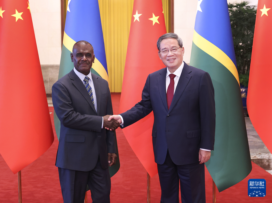 國務(wù)院總理李強7月11日上午在人民大會堂同來華進行正式訪問的所羅門群島總理馬內(nèi)萊舉行會談。