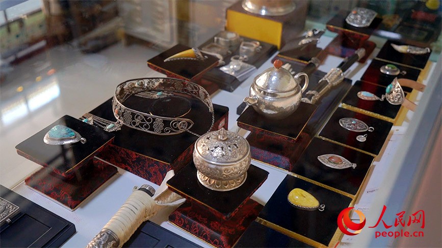 街上的“守藝”工作室里游客絡(luò)繹不絕,項(xiàng)鏈、手鏈、耳飾等蒙古族銀飾令人目不暇接。作品傳承了蒙古族銀飾,融合各民族文化的元素,每一件飾品都是特別精致的藝術(shù)品。據(jù)店主蘇力迪介紹,這里制作的手工藝品已遠(yuǎn)銷東南亞。