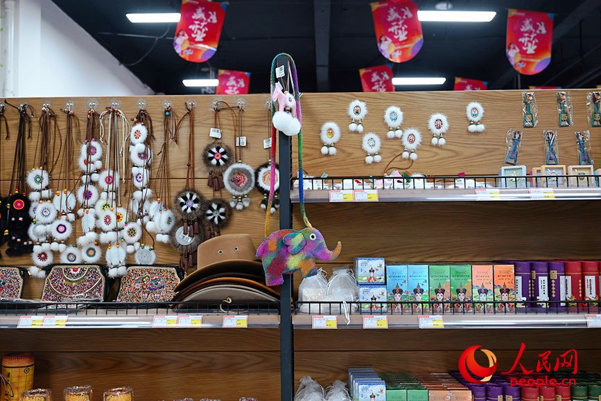東山紅星不夜城商店內(nèi)售賣的民族手工藝品。人民網(wǎng)記者 劉藝琳攝
