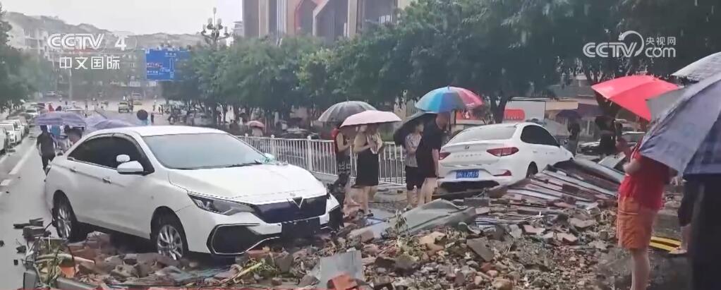 在四川,暴雨造成內(nèi)江部分地區(qū)出現(xiàn)內(nèi)澇、滑坡等險情,閬中市城區(qū)部分道路積水嚴(yán)重,臨街多處地勢低洼的商鋪進水。一小區(qū)圍墻發(fā)生垮塌,大量磚塊混合著泥沙沖走了附近停放的兩臺轎車,并沖進附近商鋪,致使道路短時間中斷。當(dāng)?shù)毓?、消防、城管和社區(qū)工作人員迅速趕到現(xiàn)場,疏散交通,設(shè)置警戒線。同時調(diào)集作業(yè)車輛清理砂石淤泥,轉(zhuǎn)運受損車輛。目前,道路已恢復(fù)暢通。