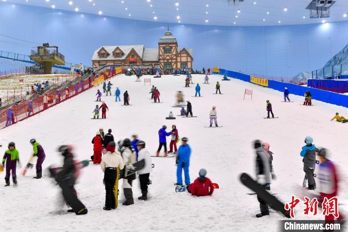 2024年1月14日,廣東省廣州市,民眾在熱雪奇跡室內(nèi)滑雪場練習滑雪,感受冰雪運動的魅力。 記者 陳驥旻 攝