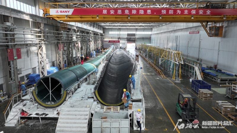 7月12日,在新疆塔城重點(diǎn)開發(fā)開放試驗區(qū)先行發(fā)展區(qū),三一(塔城)風(fēng)電設(shè)備有限公司葉片生產(chǎn)現(xiàn)場。代姣美攝