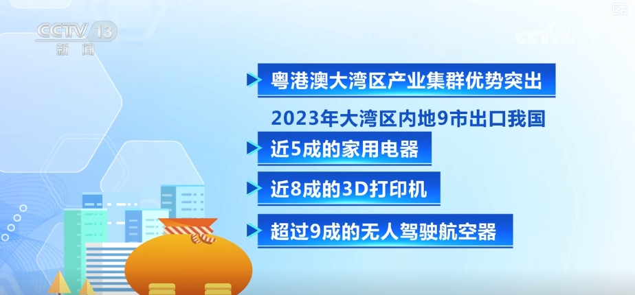 粵港澳大灣區(qū)產(chǎn)業(yè)集群優(yōu)勢突出,2023年,大灣區(qū)內(nèi)地9市出口了我國近五成的家用電器、近八成的3D打印機和超過九成的無人駕駛航空器。