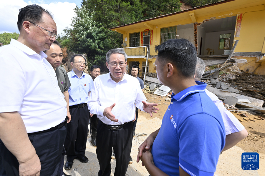 8月1日,中共中央政治局常委、國務(wù)院總理李強在湖南郴州看望慰問受災(zāi)群眾,檢查指導(dǎo)防汛工作。這是李強在資興市州門司鎮(zhèn)燕窩村實地察看災(zāi)情,走訪受災(zāi)村民。新華社記者 岳月偉 攝