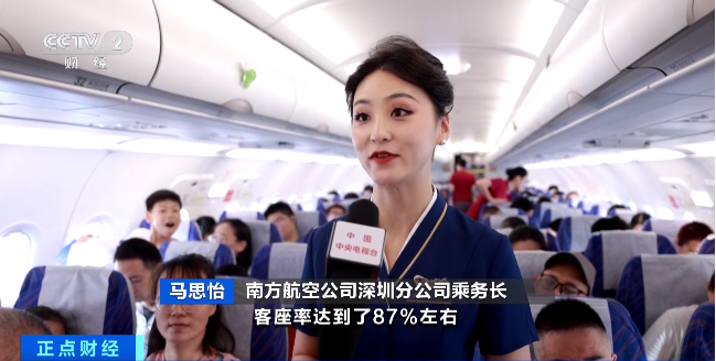 南方航空公司深圳分公司乘務(wù)長(zhǎng) 馬思怡:今天深圳-銀川-阿勒泰航線的航班客座率達(dá)到了87%左右。新開(kāi)這個(gè)航線,為去阿勒泰旅行的旅客提供了便利,也省去了中轉(zhuǎn)的麻煩。