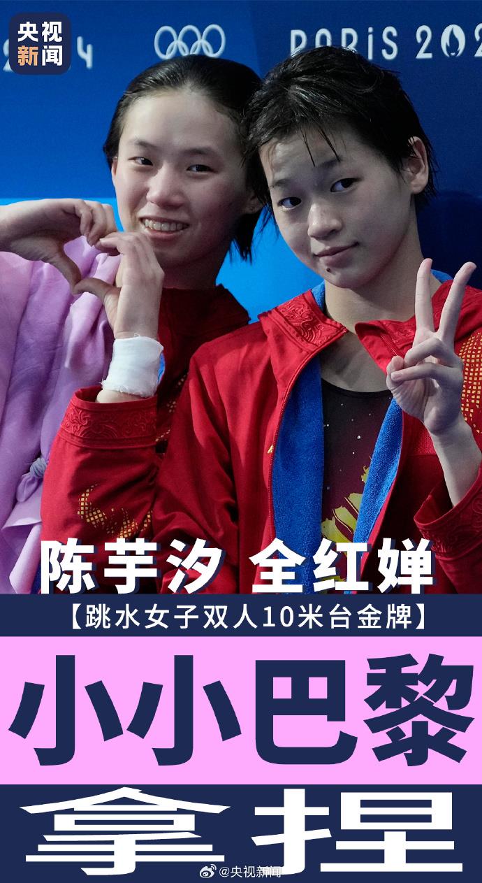 賽后,全紅嬋掛在陳芋汐身上退場時(shí),復(fù)刻經(jīng)典慶祝動(dòng)作:“小小巴黎,拿捏!”
