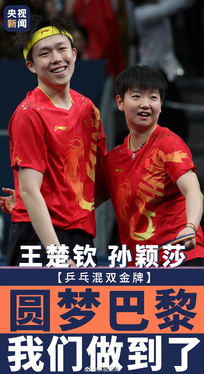 7月30日,在巴黎奧運(yùn)會乒乓球混合雙打決賽中,中國組合王楚欽/孫穎莎4-2戰(zhàn)勝朝鮮組合,奪得金牌?!拔覀冏龅搅?!”東京的遺憾在巴黎畫上了一個(gè)圓滿的句號!