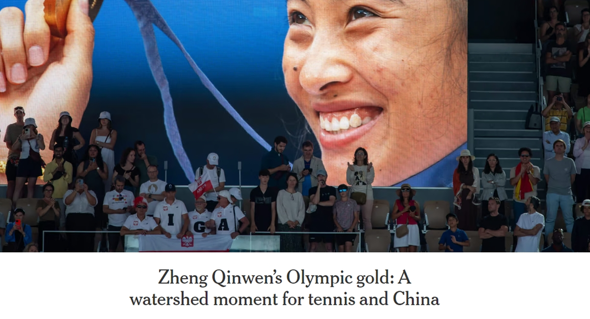 據(jù)美國《紐約時報》(NYTimes)當?shù)貢r間4日在對中國網(wǎng)球選手鄭欽文的專題報道中寫道,對于中國網(wǎng)球來說,這只是一個時間問題,不是嗎?當天凌晨,21歲的鄭欽文奪得巴黎奧運會女子網(wǎng)球單打冠軍,為中國網(wǎng)球奪得了首枚奧運女單金牌。