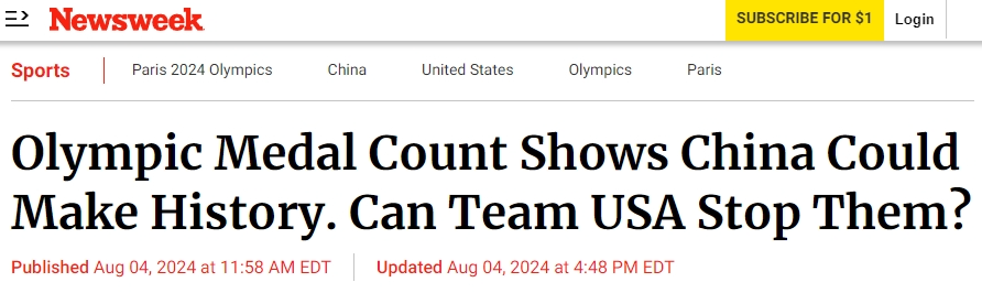 中國日報網(wǎng)8月5日電 2024巴黎奧運會賽程已過半。截至北京時間5日16時10分,中國隊以20金15銀12銅,總共47枚獎牌的優(yōu)異表現(xiàn),位居獎牌榜第一。外國媒體對于中國隊在本屆奧運會網(wǎng)球、游泳等項目上的突破以及在傳統(tǒng)優(yōu)勢項目上一如既往的穩(wěn)健表現(xiàn)給予了相當大的關注。