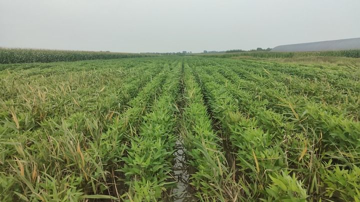 這是吉林省農安縣小城子鄉(xiāng)光明村種植的耐鹽堿大豆(2024年8月4日攝)。