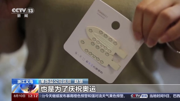7月27日,隨著黃雨婷、盛李豪組合在巴黎奧運(yùn)會上贏得射擊混合團(tuán)體10米氣步槍金牌,黃雨婷佩戴的發(fā)夾也引起網(wǎng)友的關(guān)注,迅速成為社交媒體的熱門話題。在義烏國際商貿(mào)城,同款發(fā)卡再次“爆單”,銷售量得到顯著增長。