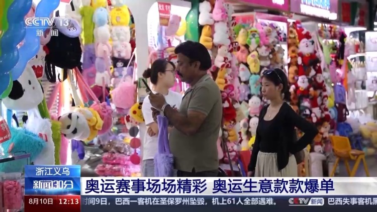 巴黎奧運(yùn)會激戰(zhàn)正酣,“奧運(yùn)經(jīng)濟(jì)”也持續(xù)升溫。從各類體育用品、奧運(yùn)手環(huán),到“冠軍同款發(fā)夾”,在浙江義烏國際商貿(mào)城,國際客商來往穿梭,與奧運(yùn)相關(guān)的產(chǎn)品訂單不斷。