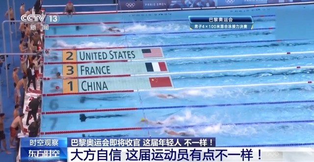 巴黎奧運(yùn)會(huì)游泳賽場(chǎng)最后一個(gè)比賽日,中國(guó)隊(duì)放了個(gè)大招。男子4X100米混合泳接力決賽上,中國(guó)隊(duì)力壓該項(xiàng)目40年“霸主”美國(guó)隊(duì),以3分27秒46的成績(jī)奪冠。