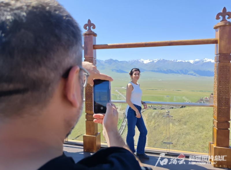 土耳其媒體人士在那拉提旅游風(fēng)景區(qū)合影留念。石榴云/新疆日報記者 宋海波攝