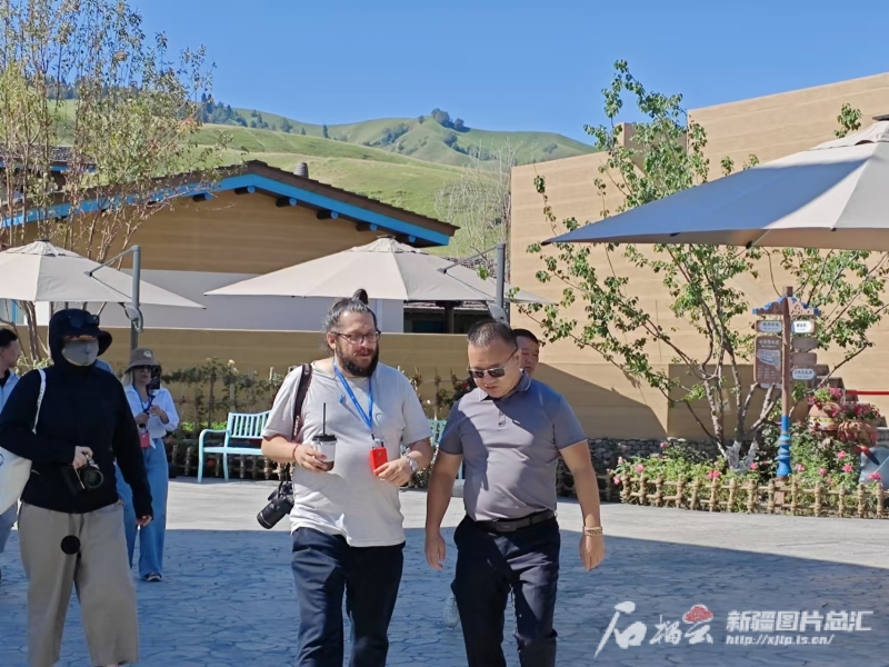 當(dāng)日,車輛剛抵達那拉提景區(qū)游客集散中心,11位土耳其媒體人士便滿懷激情,紛紛舉起手機與相機,快門聲此起彼伏,記錄下這初見的驚喜。抬眼遠眺,看到的是村落里一座座錯落有致的院落式,這里是7月初營業(yè)的那拉提拈花灣哈茵賽民族風(fēng)情度假村。