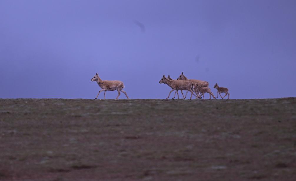 7月8日,在可可西里卓乃湖區(qū)域,幾只藏羚羊在活動(dòng)。新華社記者 張龍 攝