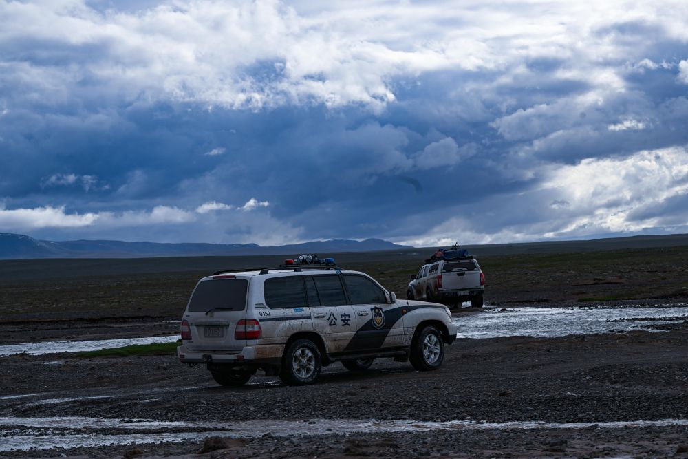 此時,窗外天空忽然轉(zhuǎn)晴。前路會不會陷車?還要走多久才能到卓乃湖?面對復(fù)雜的自然環(huán)境,車輛隨時可能拋錨、扎胎,甚至是傾斜、側(cè)翻。“我們每個人都會修車,但是尼瑪扎西的技術(shù)最好?!痹瑥V明說。
