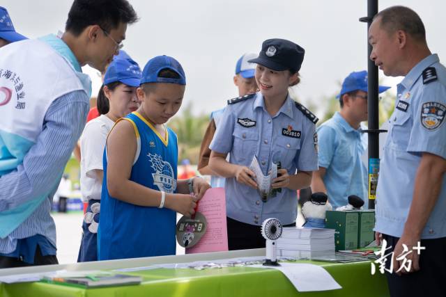 保護紅樹林生態(tài)系統(tǒng)國際日,民警們在湛江市區(qū)擺攤,科普紅樹林保護知識。