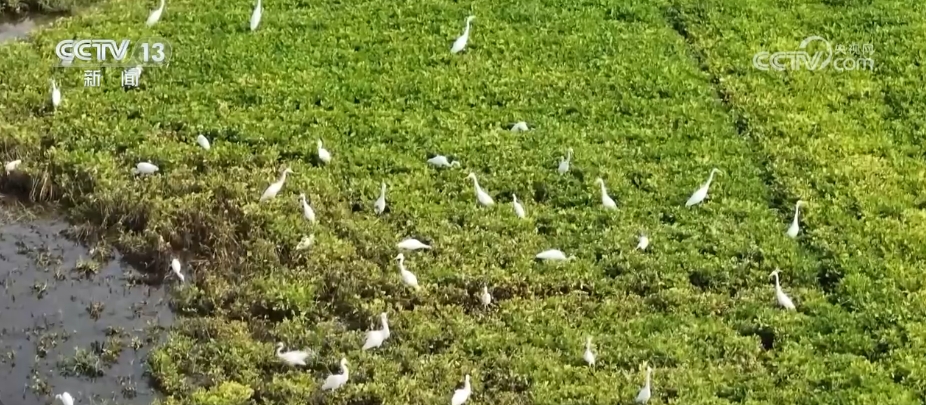 在河南周口市淮陽(yáng)區(qū),由于近期降雨頻繁,當(dāng)?shù)毓胚\(yùn)河不少低洼地帶變成灘涂濕地,多群白鷺匯聚于此,棲息覓食。
