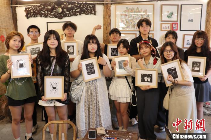 8月15日,臺灣青年展示制作完成的版畫。傅飛揚 攝