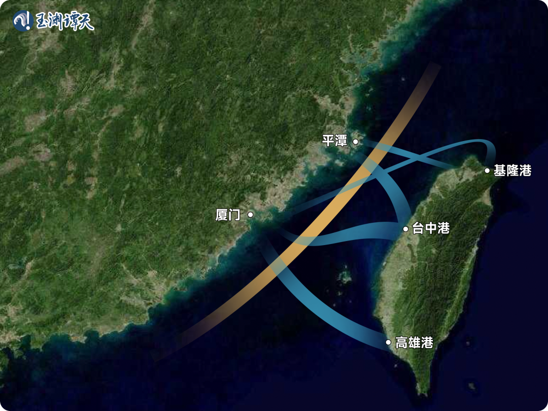 從圖上可以看到,要到達(dá)臺(tái)灣島西岸,大多數(shù)船只都需要穿過臺(tái)灣海峽中部海域。