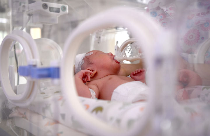 2024年6月1日,在西安國際醫(yī)學(xué)中心醫(yī)院新生兒科病房,護(hù)士為新生兒喂奶。 新華社記者 劉瀟 攝