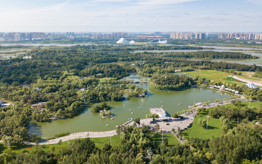 游人在哈爾濱太陽(yáng)島風(fēng)景區(qū)的太陽(yáng)湖上游覽。新華社記者 王建威 攝