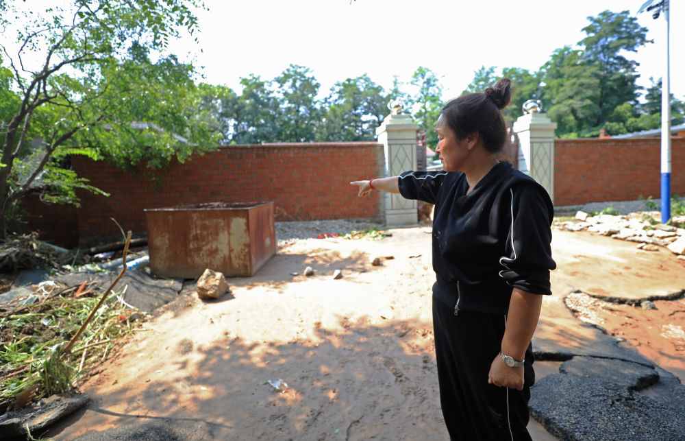 8月21日,在建昌縣黑山科鄉(xiāng)小臺子村,村婦聯(lián)干部臧春英講述李清學(xué)犧牲經(jīng)過。新華社記者 楊青 攝