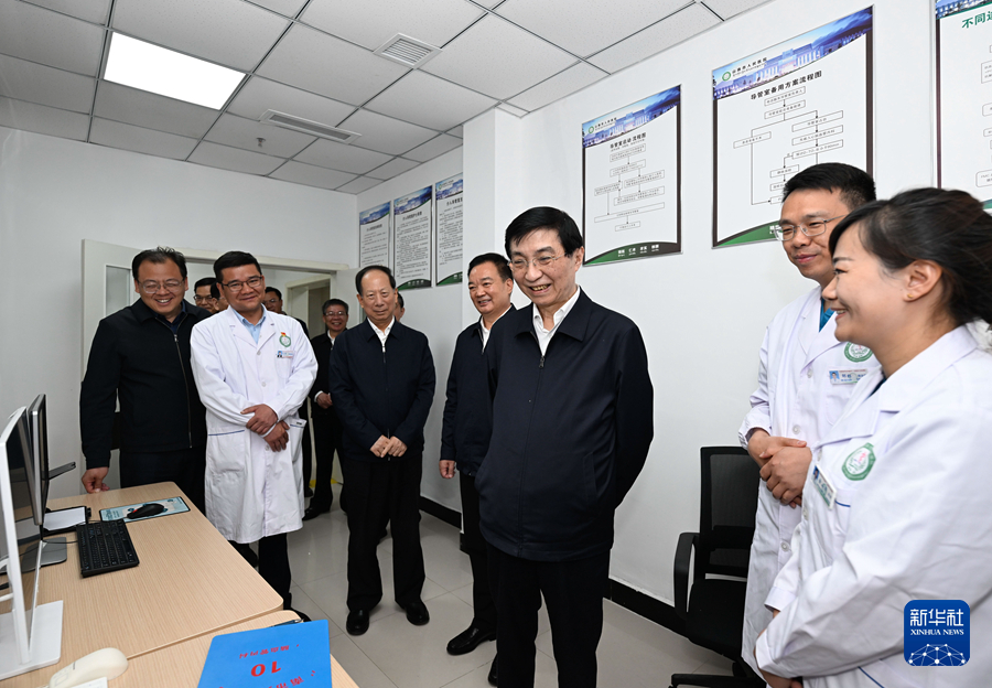 中共中央政治局常委、全國政協(xié)主席王滬寧到拉薩、山南就對口援藏等工作開展情況進行調研。這是8月27日,王滬寧在山南市人民醫(yī)院調研。新華社記者 申宏 攝