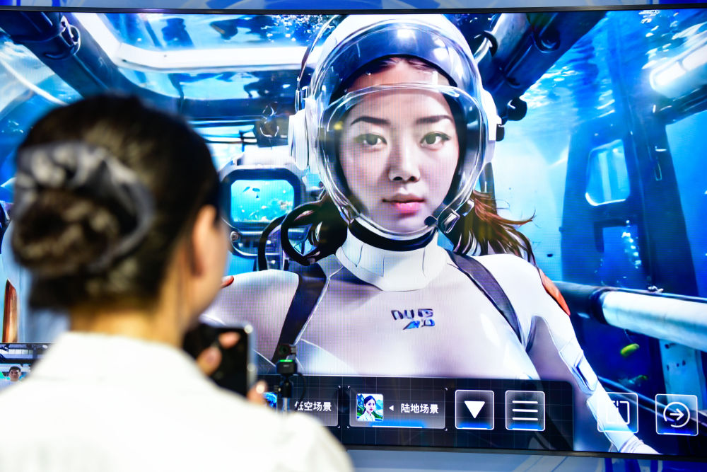 8月28日,參會人員在數(shù)博會上體驗AI+元宇宙空間。